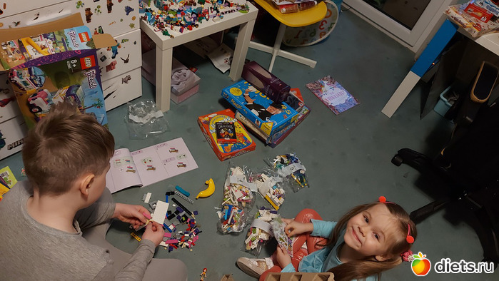 После осмотра подарков позавтракали (остатками со вчерашнего дня) и дети ушли собирать Лего