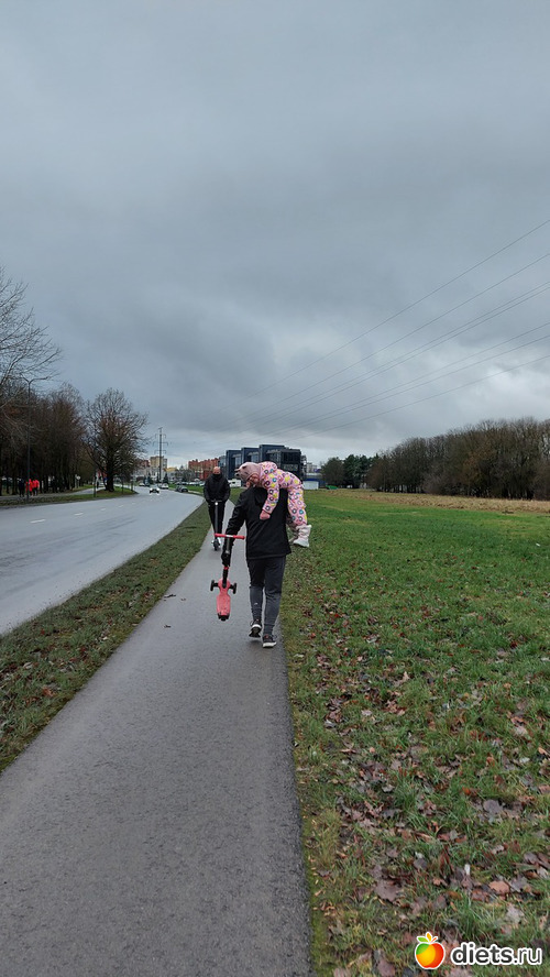За день до этого я спрашивала мужа, не хочет ли он уже перейти к бегу, и он сказал, что пока не готов, и вообще насчет бега сомневается, на ходьбе и некоторых ограничениях в питании у него уже ушло 4 кг, и вроде как пока всё хорошо идет. Но под елочкой он нашел одежду для бега, пришлось составлять нам компанию
