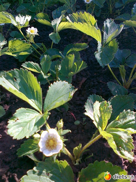 К тому же посмотрите, какая красота зацвела у нас на даче... Это клубника, и скоро на ней появятся ягоды...