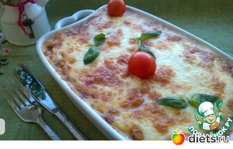 Далее выкладываем кружки моцареллы. Отправляем в разогретую до 180-190 гр. духовку и выпекаем 25 минут.