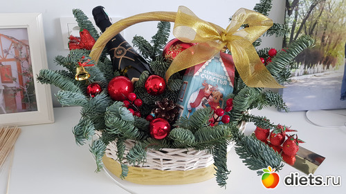 Корзинка с мандаринами такая уютненькая, мы дома в этом году подобную под елку поставили, ну прям заглядение