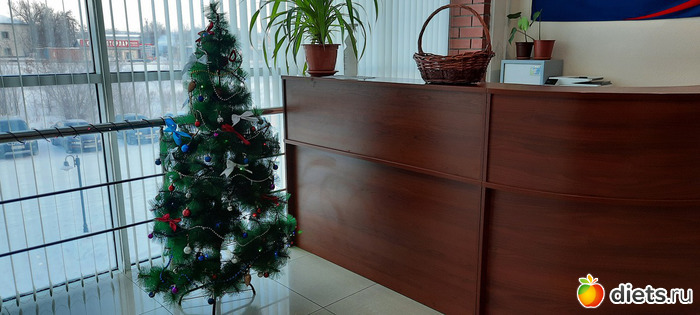 елочка в фойе такая трогательная.Стоит собой жизнь украшает.