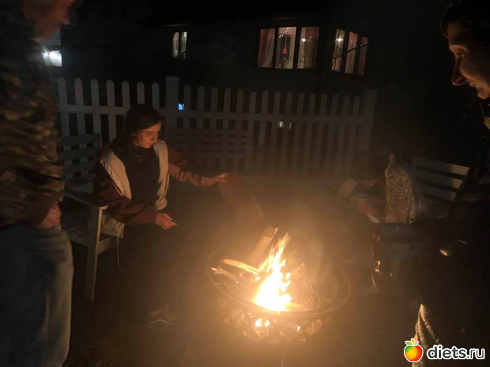 Новый год мы отмечали дома - пригласили друзей. У них 4 детей. Так что скучно не было. Посидели сначала дома, в 12 вышли во двор с шампанским и смотрели, как шар падает, помахали соседям. Потом костер разожгли.
