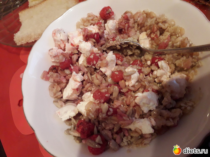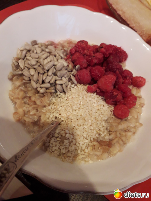 -Геркулесовая каша с семечками, кунжутом, малиной и зефиром-на воде