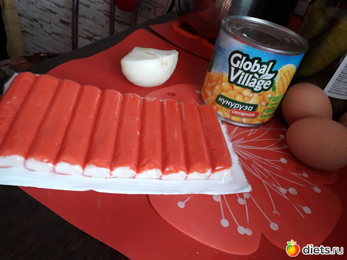 Кстати, крабовый салат с солеными огурцами тоже как-то делала, вполне себе вкусно. Даже разнообразие.