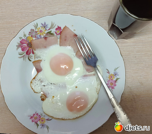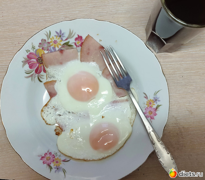 завтрак: 2 яйца и разрешенная ветчина на сухой сковороде
