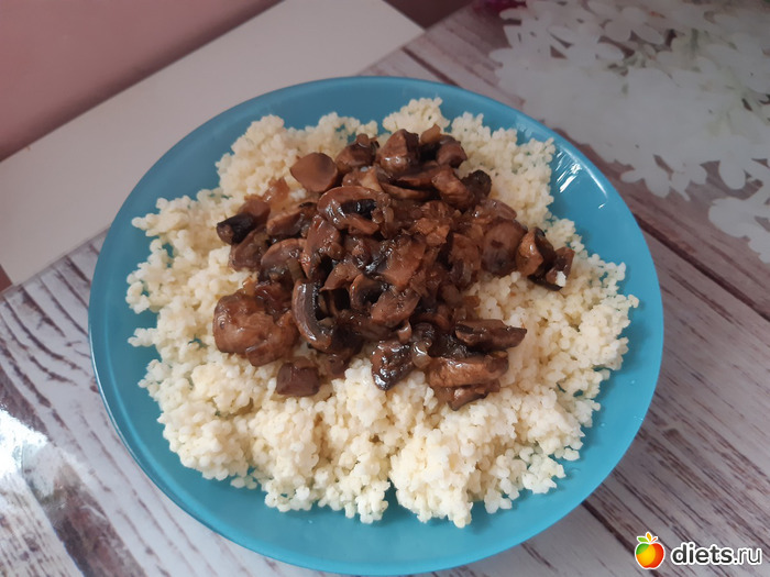 А потом сидела целый час думала, что приготовить. Макаронные изделия и гречку люблю, но хотелось что-нибудь ещё приготовить. Штудировала сайты, какую крупу в какой день есть можно. Запуталась окончательно. На одном сайте 90-дневки написано, что гречку нужно есть в крахмалы, на другом-в углеводы. И так практически про все крупы. Кукурузная крупа, вроде бы нужно есть в крахмалы, но в ней содержится 71%углеводов. Рис-всегда ела в крахмалы, но есть сайты где рецепты с ним пишут в углеводы. Пшено то же самое. Вообщем, запуталась, разнервничалась и сварила пшено. Ела, восторга не испытала(потому что на воде), хотя и с грибами. Немного солёной капусты ещё.