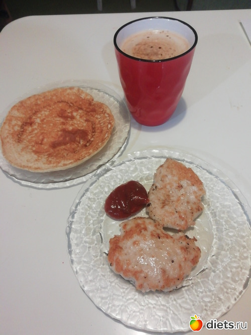 Мой ранний завтрак в 5.. Моя прелесть овсяноблин. Две куриные котлетки "без никому"