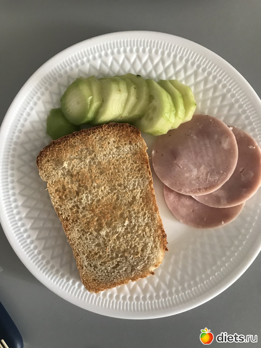 На завтрак вчера был мой любимый подсушенный хлеб с ветчиной 3.5 % жирности и огурцом