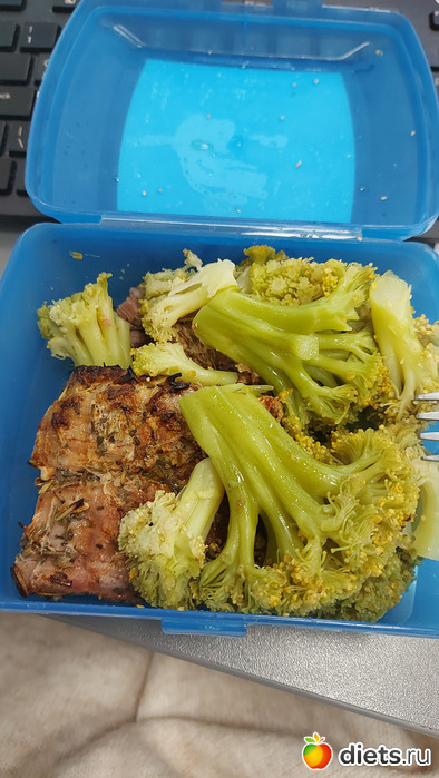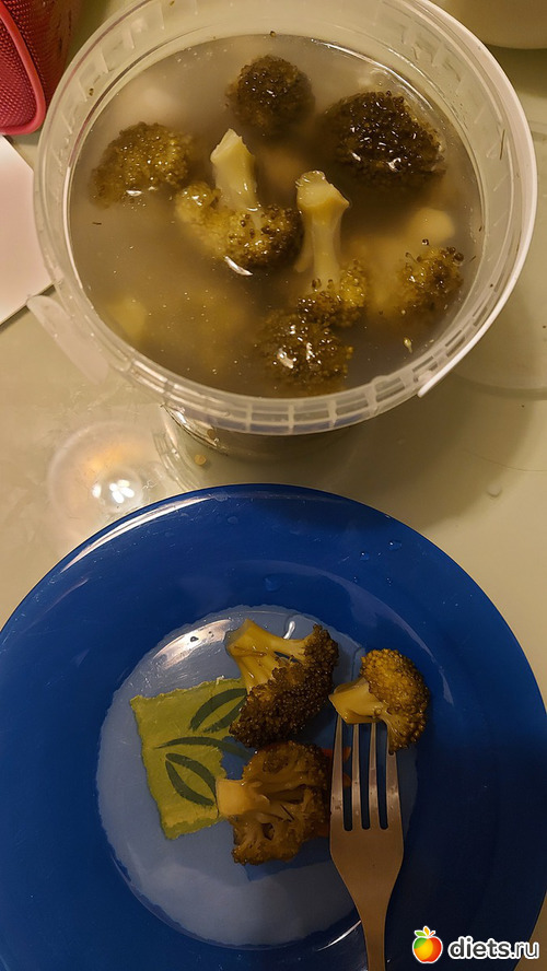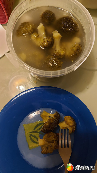 Муж диетится по-черному, брокколи на пару разнообразит в некоторые дни квашенoй брокколи, в виде читмила