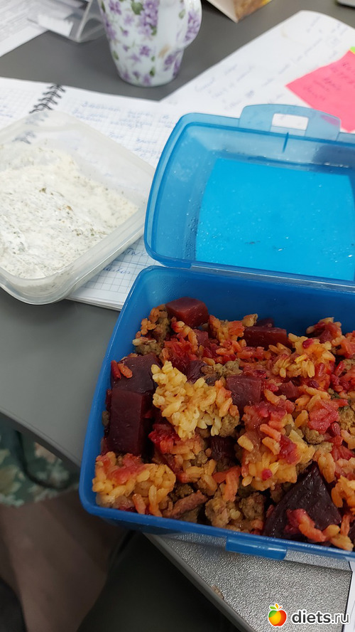 Питание как обычно, завтрак - каша или 2 яйца; обеды: яичница 1 день (не фотала), стейк из говядины с брокколи 1 день и жаркое из говядины, свеклы и риса 2 дня: