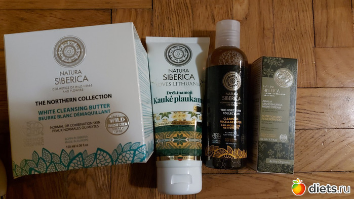 Самое интересное в этом заказе - баттер для мытья лица. Консистенция у него как у сливочного масла, в комплект идет лопаточка. Процедура демакияжа очень проиятная, смывает косметику хорошо (водостойкую тушь - плохо). Еще удивила целая подлинейка Сиберики выпущенная специально для Литвы - Natura Siberica loves Lithuania