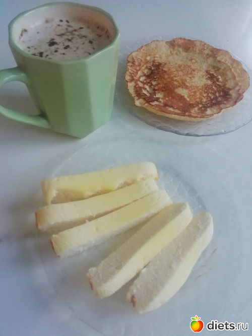 Овсяноблин, кофейный напиток и позавчерашняя вкусная холодная творожная запеканка