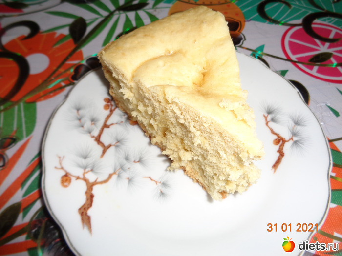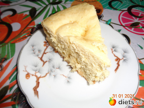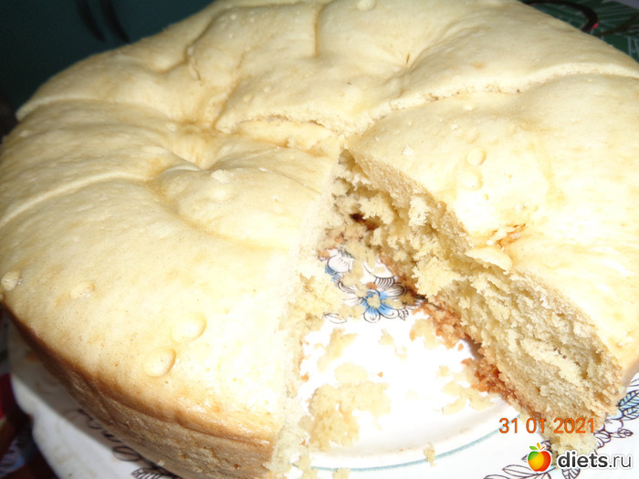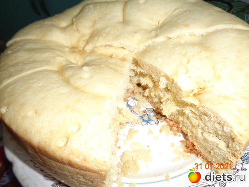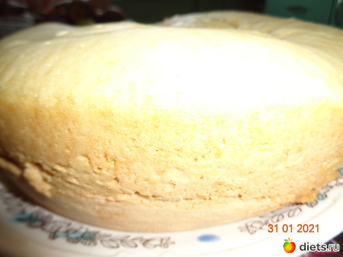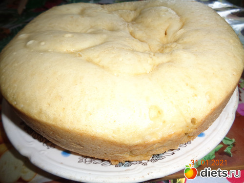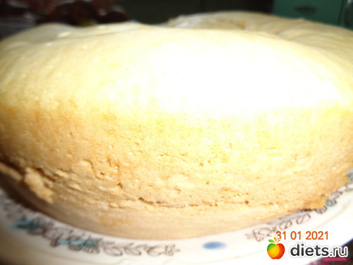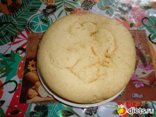 4. Хорошо смазываем чашу мультиварки сливочным маслом и выливаем тесто. Устанавливаем режим "Выпечка" на 50 мин. Крышку не открывать!!! По окончанию программы оставить закрытой на 3-5 минут, далее приоткрыть на 5 см, оставить еще на 5 минут. После достать, бисквит отлично выпадает.