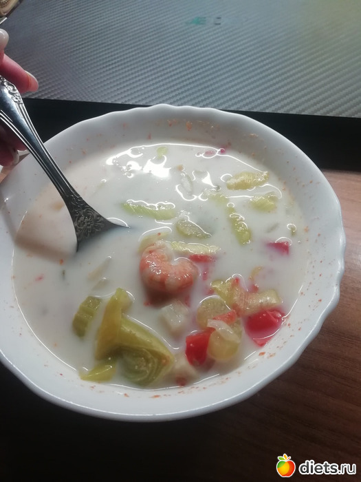 Ужин это был просто кайф от процесса. Я снова изобразила суп с креветками, но в этот раз у меня было всё- и два вида сельдерея и лук порей и креветками я не поделилась
