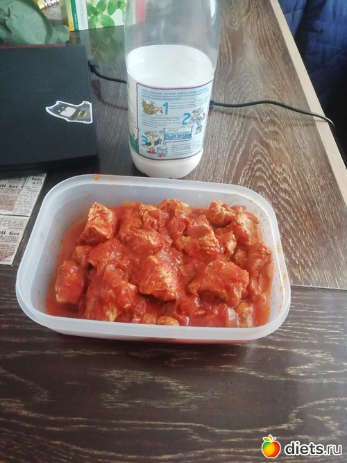 заготовленная со вчера индейка. Я съела не весь контейнер.