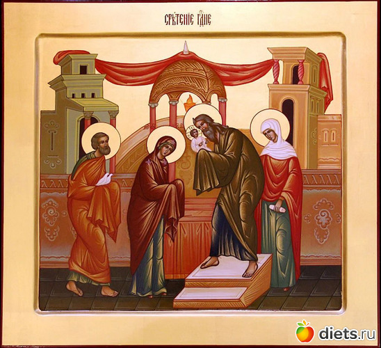 На сороковой день после Рождества Христова святая Мария вместе с Иосифом Обручником отправилась в Иерусалимский храм, чтобы поблагодарить Бога за первенца.