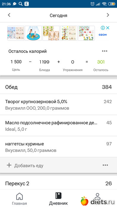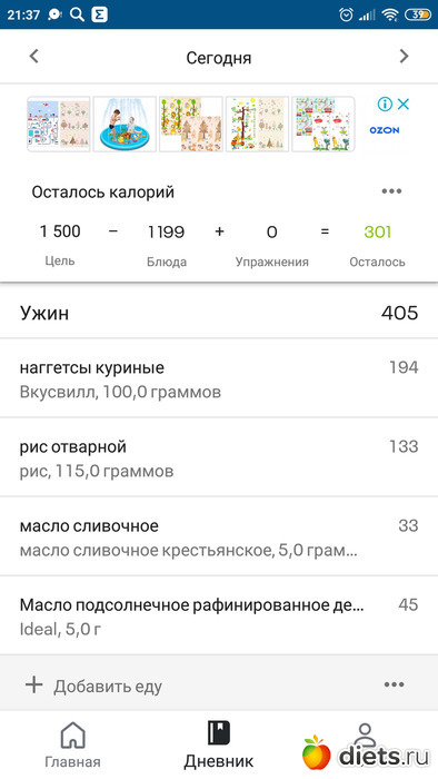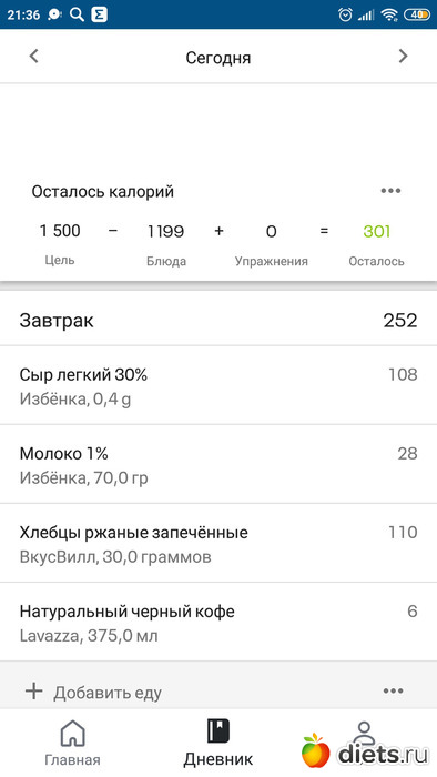 а планирую я еду с вечера...заношу в программу на телефоне...и считает мне там сразу и с собой таскать и корректировать удобно... а в дневнике тут только позор свой записываю.. типа вот, опять обожралась