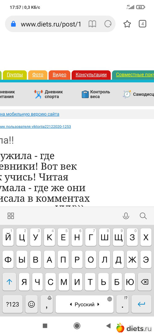 О! Я обнаружила - где писать дневники! Вот век живи - век учись! Читая другие - думала - где же они пишут - писала в комментах к дневнику питания. УУУ))) Насмешила себя сама.