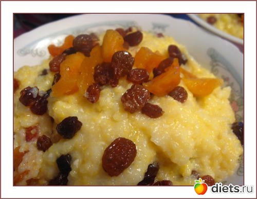 Пшенная каша - одна из самых старинных каш, готовится из зерна проса. Эта каша поставляет в организм много полезных веществ - железо, фтор, магний, марганец, кремний. Есть в ней витамины группы B, витамин А, PP, клетчатка, полезные аминокислоты. Вещества, содержащиеся в пшенной крупе, имеют способность связывать и выводить ионы тяжелых металлов. Пшенная каша положительным образом сказывается на работе пищеварительной системы и является в этом плане диетическим продуктом. Энергетическая ценность пшенной каши довольно велика, но это не мешает использовать её в меню худеющих – за счет снижения уровня холестерина в крови, очистки сосудов, замедляется отложение жира в тканях, что положительно сказывается на процессе похудения