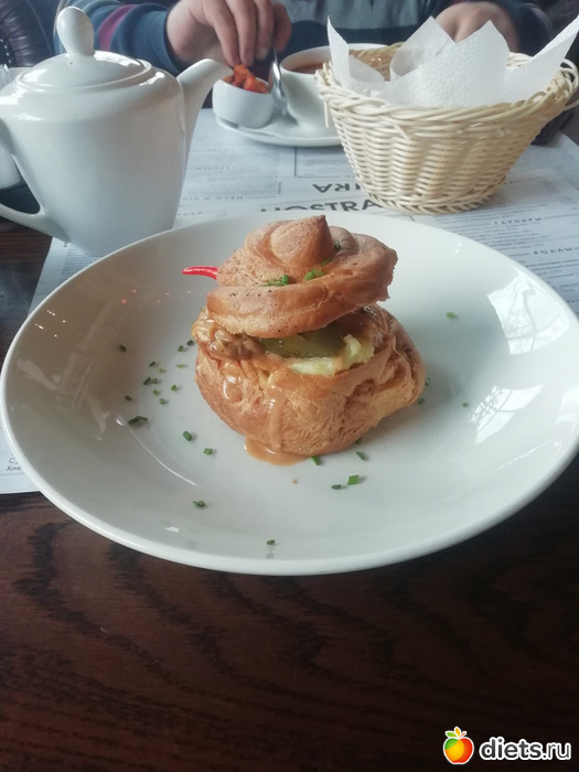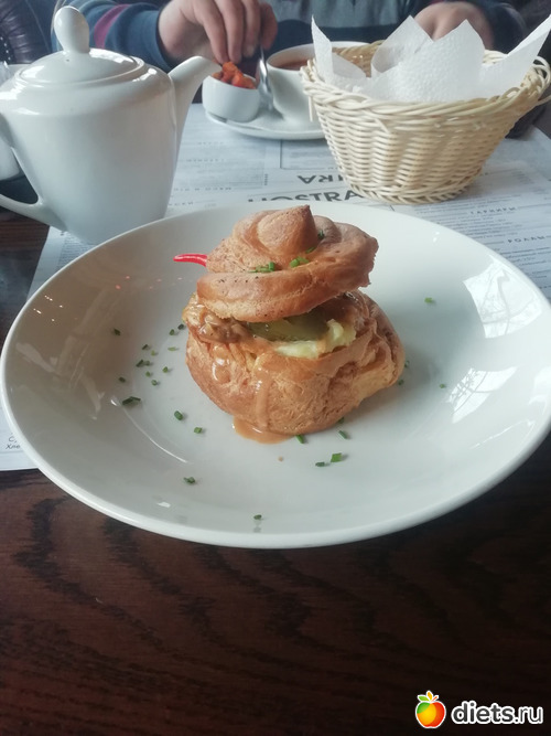 В общем это был толстый профитроль с картофельным пюре и мааааленькой ложкой бефстроганова сверху... Облом..