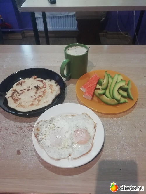 ) Остатки крабовых палок и небольшое авокадо. Ну и традиционно кофейный напиток.