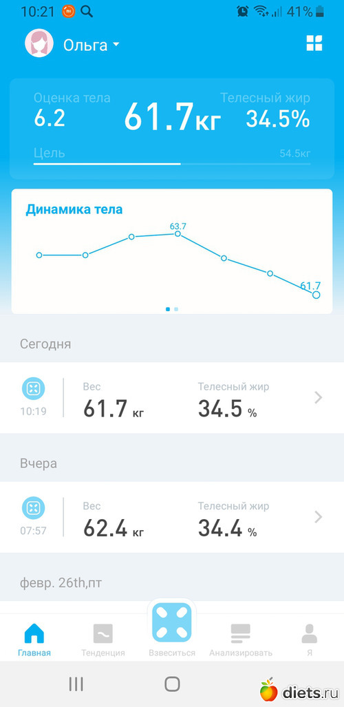 Вес на 28.02.2021 - 61,7 кг (-1000г за неделю)
