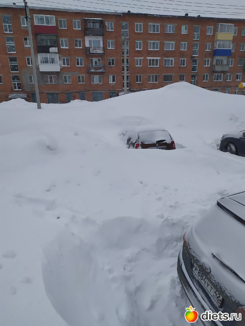 А зима у нас еще в разгаре! Снега очень много, по первый этаж. Машину периодически откапываем и сами копаем дорогу