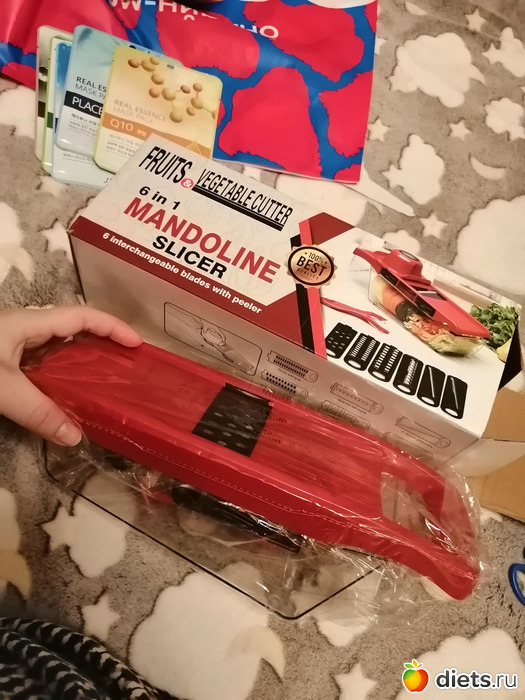 Всем привет! Не могу не отметиться и не написать пост про подарки отдельно Пишет мне вчера Женечка в директе, что мол ждет меня моя посылка в Озоне... Ок, думаю, надо бы сбегать - мне ж неймется Забрала посылку в огромном пакете, а сама иду и гадаю - кто же это может быть? А там... Во-первых, там моя мечта - шинковка с насадками и защитой для рук (чтобы и себя не потереть )...