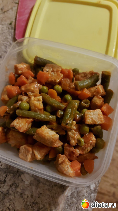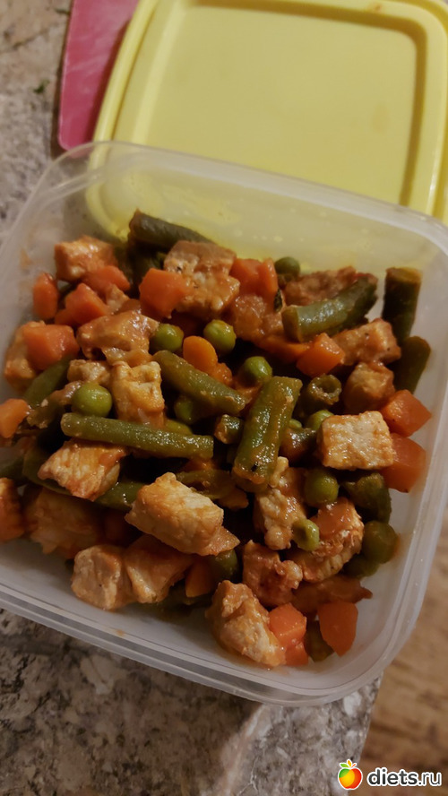 тушеная свинина с заморозкой миксом - ну так, мне лучше с яичницами эти заморозки заходят