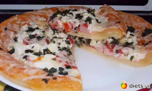 Причем по качеству такая пицца получается ничуть не хуже той, что готовится традиционным способом — запекается в духовке или специальной печи. В качестве же начинки для быстрой домашней пиццы подойдут любые готовые (отваренные, потушенные, запеченные, обжаренные и т.д.) мясные или колбасные изделия, сыры, грибы и овощи. Не забудьте использовать какой-нибудь соус (а то и два сразу), чтобы пицца получилась нежнее и вкуснее. Это может быть кетчуп (как вариант томатный соус/паста) или майонез, либо смесь из обоих соусов. Подойдет и горчица, сметана, сырный соус. Отличным дополнением может стать рубленая зелень (базилик, петрушка, укроп).