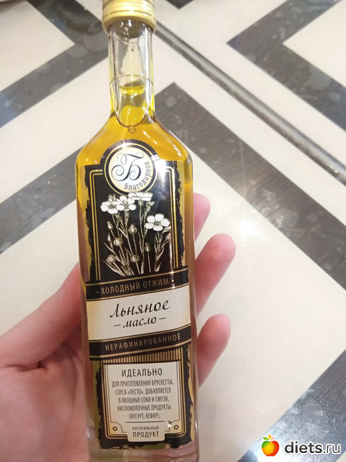 Масло льняное взяла на пробу. Да, знаю, оно должно быть в тёмном стекле... Но не было. В пластике (хоть даже и тёмном) брать не стала, решила это попробовать, его тут всего 100мл.