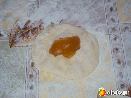 Каждый кусочек скатать в шарик, прижать ладошкой на столе, положить по ложечке джема, хорошо защипать, придать форму шарика.