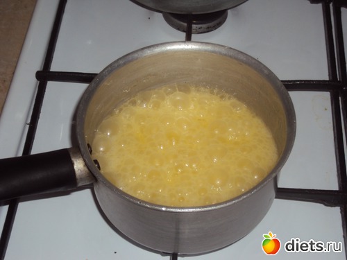 Убавить огонь и варить помадку 5-6 минут, помешивая. В конце варки влить мятную настойку, перемешать и дать покипеть несколько секунд.