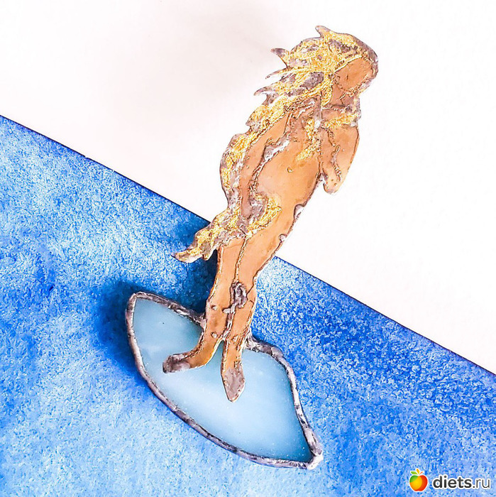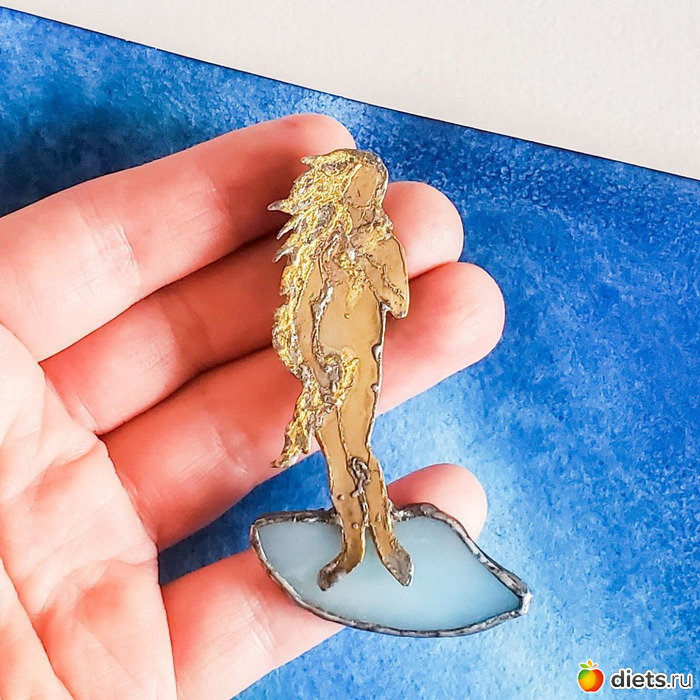 Брошь - латунь, олово, волосы покрыты сусальным золотом