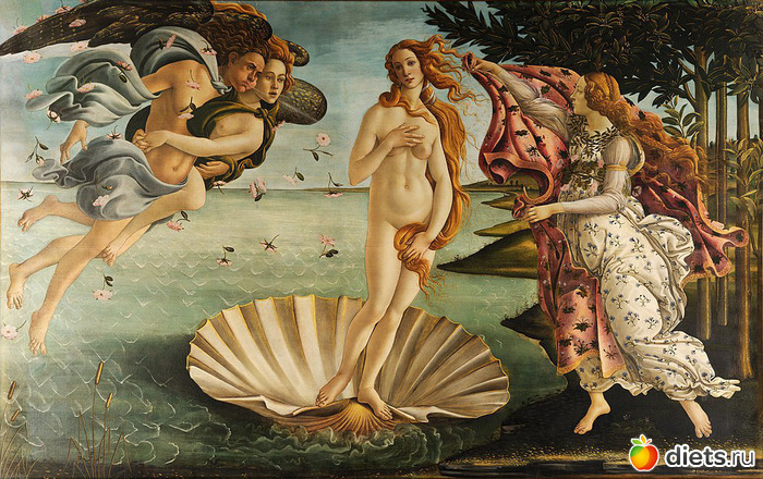 Сандро Боттичелли. Рождение Венеры. 172,5×178,5 см. 1484 г. Галерея Уфицци, Флоренция