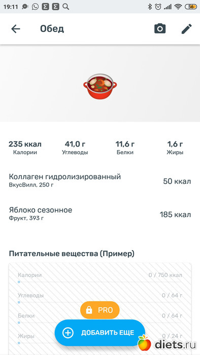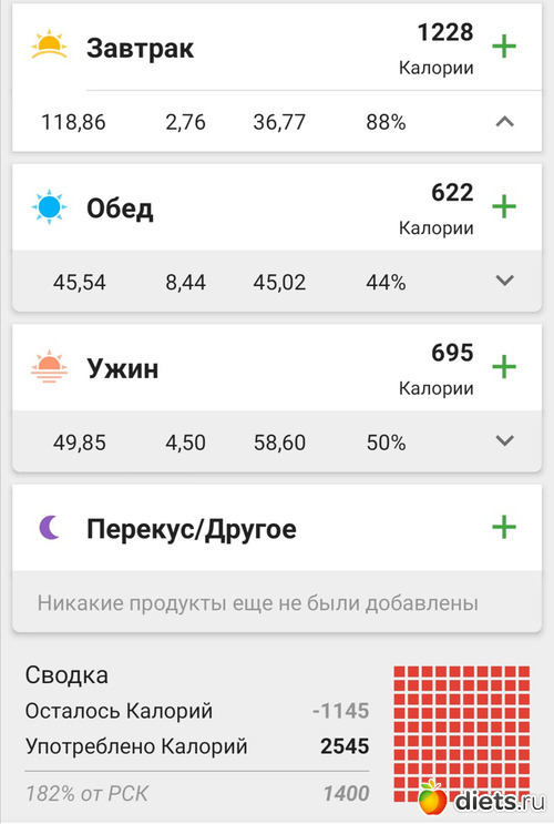 Посмотрела, что чуть недобор. Пометалась, что закинуть, чтоб среди ночи есть не приспичило, лучше сыра ничего придумать не смогла... И опять по жирам перебор вышел, потому что свой низкокалорийный сыр я доела вчера... Но общий калораж чуть пониже и до 19 уложилась.