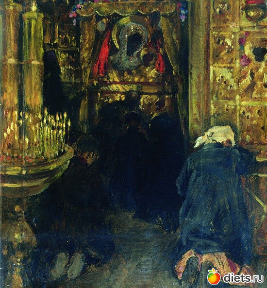 Звучит «Господи и Владыко живота моего». Бабушки усердно кладут земные поклоны.