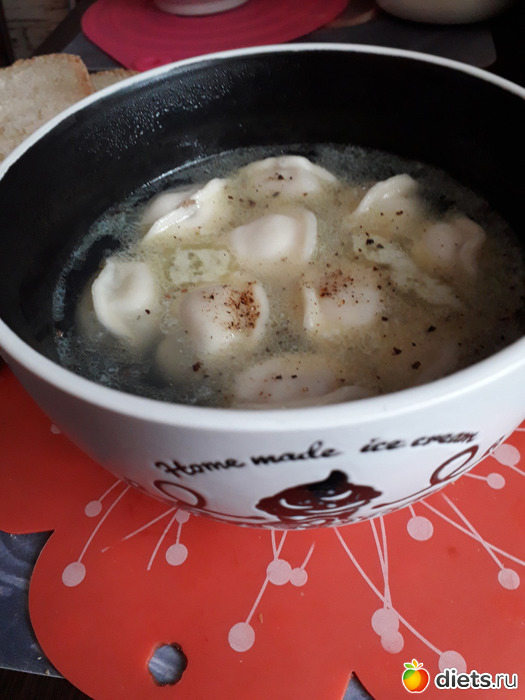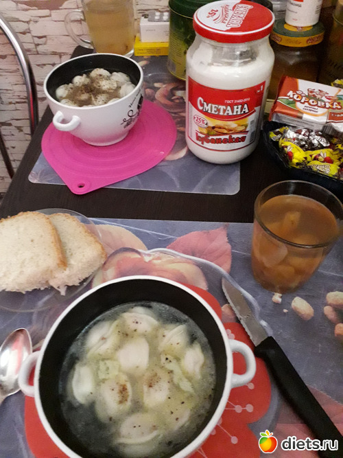 -Пельмени магазинные -с бульоном, вместо супа, со сметаной