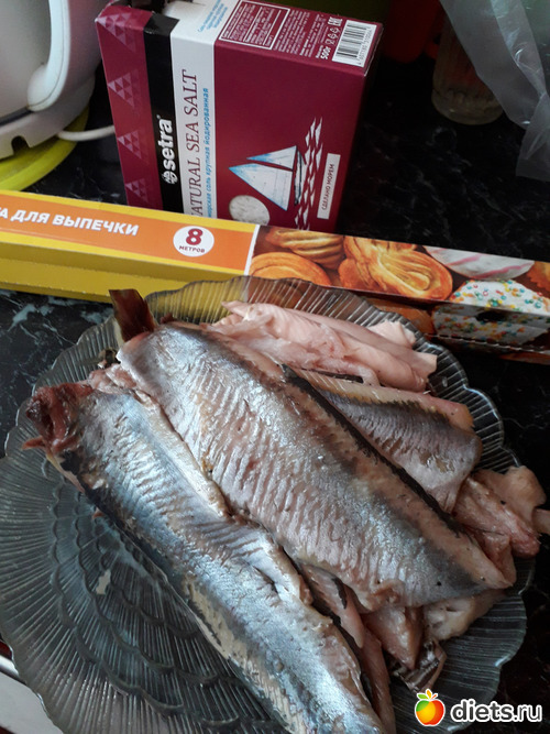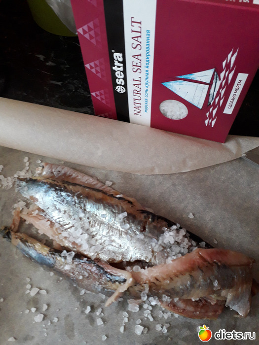 И в пергаменте -бумаге для выпечки-нет воды.Рыба лежит просто на соли,соль она и не растворяется,но свое дело делает!Селедку солила сейчас 2 дня.Прекрасно получилась!