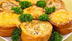 Запекать при температуре 180 градусов в течение 40–45 минут. Затем посыпать сыром (я половину кусочков посыпала сыром, половину — нет), поставить в духовку еще на 5–7 минут. Мне одинаково понравились гнездышки и с сыром, и без сыра.