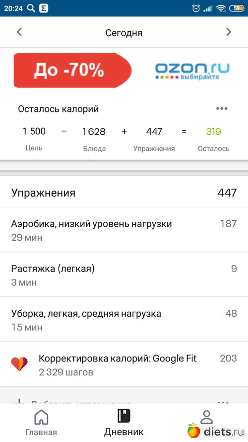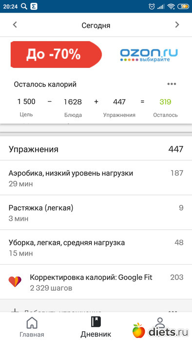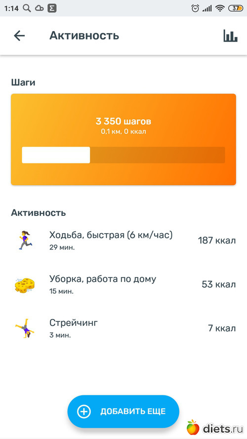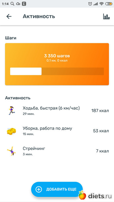 Ради интереса внесла свою деятельность в счётчики - совершенно другая картина... В одном из них, кстати, добавляются шаги от ГуглФита так и не распознанным мною способом (показатели эти ну вообще ни с чем не совпадают), а в другом - добавляются, но почему-то другие и в счёт сожженых каллорий не входят...