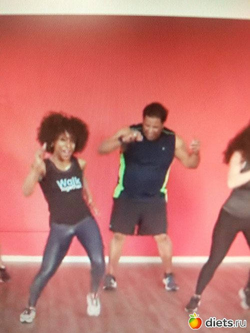 Но... После мы все же решили походить хотя бы минут 15, предварительно вынырнув из слинга и переместившись в свободное нахождение в руках. В этот раз мне попалось весьма забавное видео. Самой Лесли там не было, тренировку вела симпатичная курчавая темноволосая девушка. Почему-то за эти 15мин участники трижды были переодеты и переставлены все... Иииииииии там был тот самый танцующий мужик