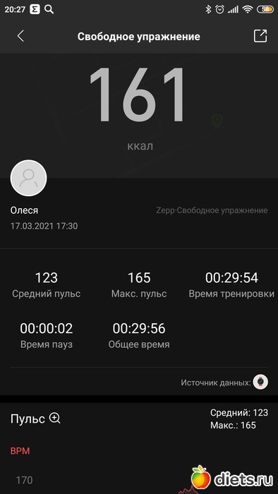 Что самое интересное, часы мои оценили эту тренировку так же, как предыдущую, хотя разница прям очевидна