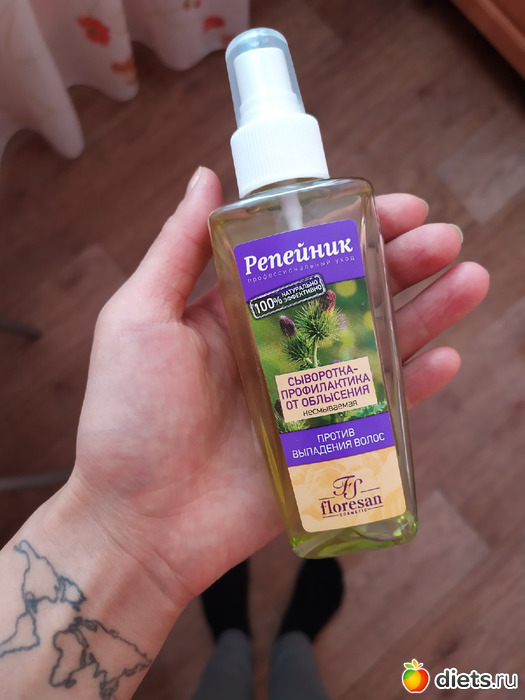 В сыворотке хороший состав для волос: комплекс экстрактов (репейник, шишки хмеля, перец, крапива), пропиленгликоль, ланолин этоксилированный, Д-пантенол, гидантоин, глицин, экстракт хвои.