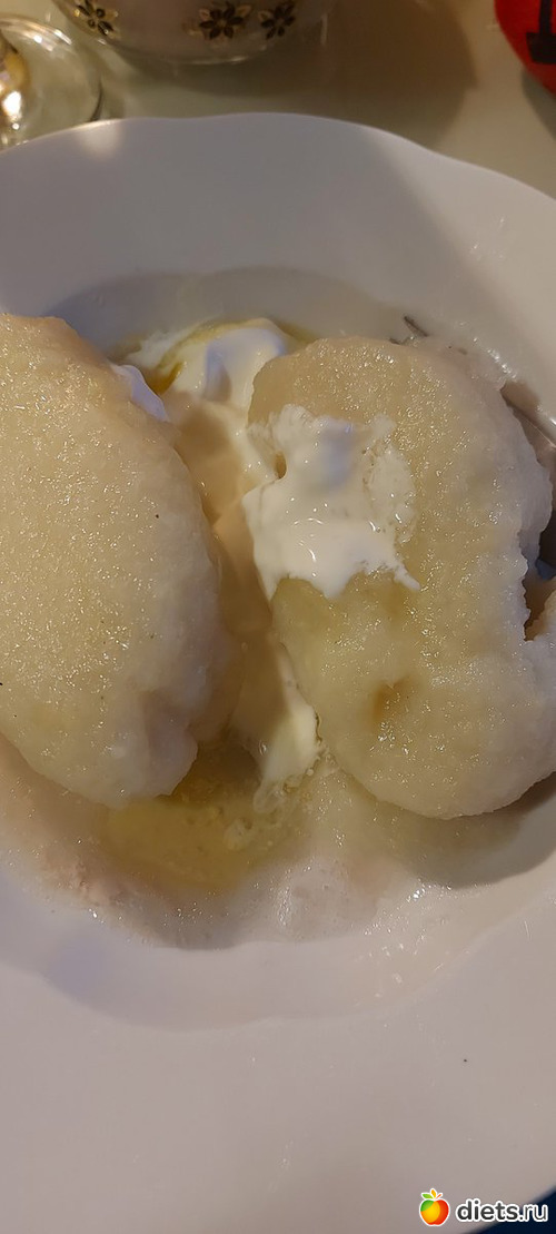 На горячее - литовское национальное блюдо цепелины (из картошки с мясом)