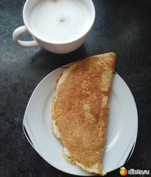Завтрак: овсяноблин с бананом и сыром, капучино