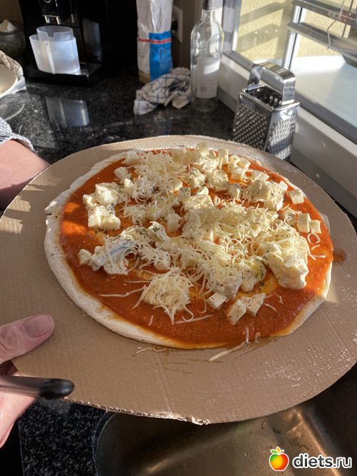 Муж пек пиццу, "тесто" из тыквы, без муки. Не в первый раз делает, нам нравится, тыква вообще не чувствуется, в хорошем слысле этого слова, т е действительно похоже на пиццу