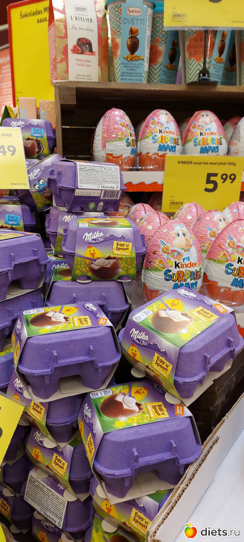 всевозможные киндеры, в упаковках из-под яиц, гигантского размера и пр