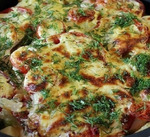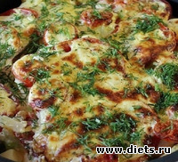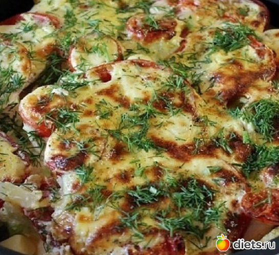 Затем посыпаем тертым сыром и еще немного запекаем до расплавления сыра.